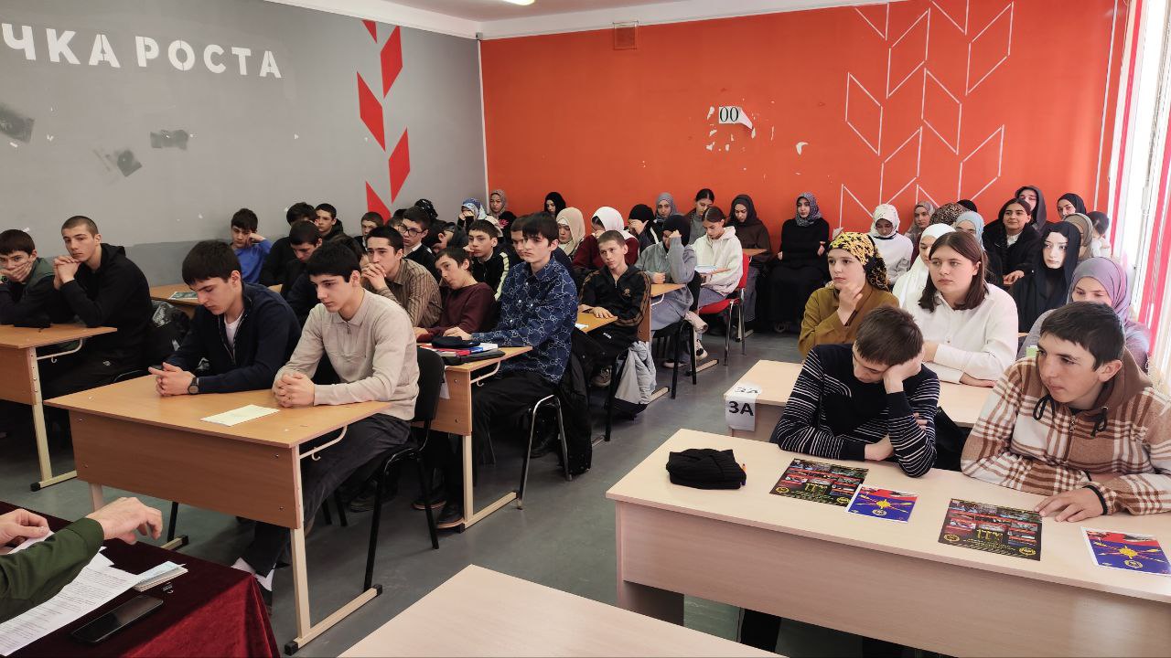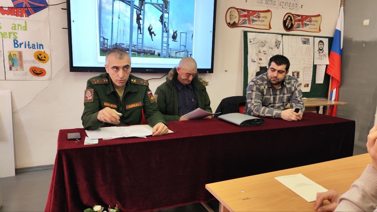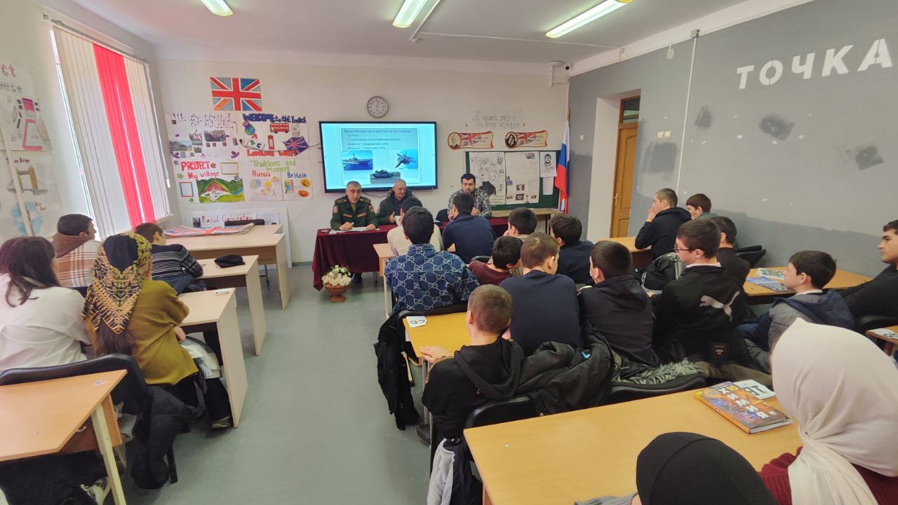На встрече учащимся рассказали о важности профессии военного, структуре Вооруженных Сил РФ, о призыве, значении военного билета и др.